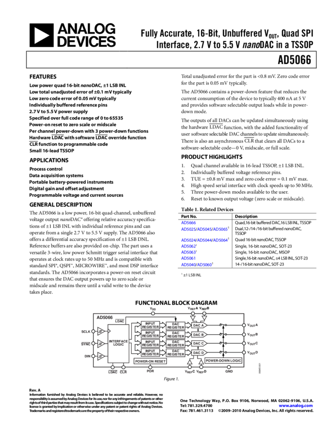 AD5064: Fully Accurate, Quad, 16-Bit, Buffered VOUT, 4.5 V to 5.5 V DAC with SPI Interface