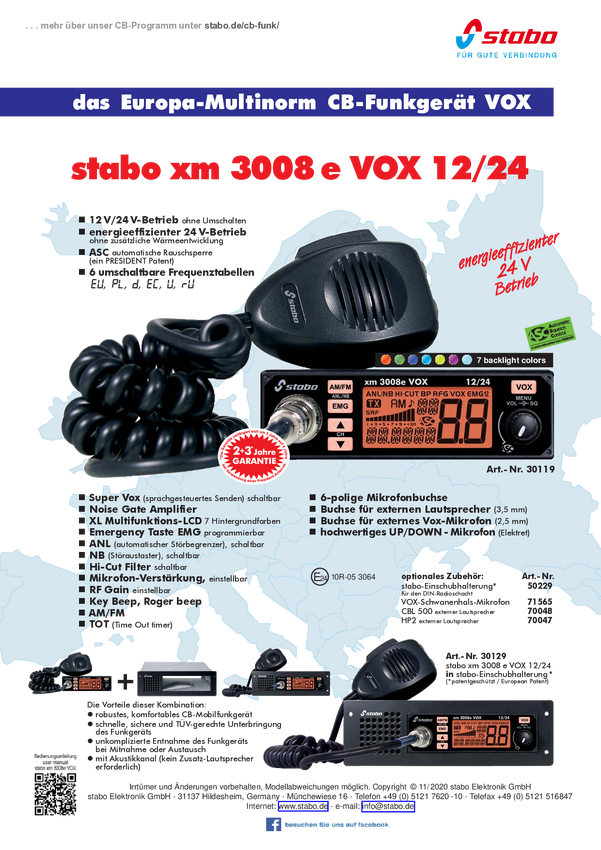 Stabo XM 3008E-R VOX 12/24 30129 Radio CB