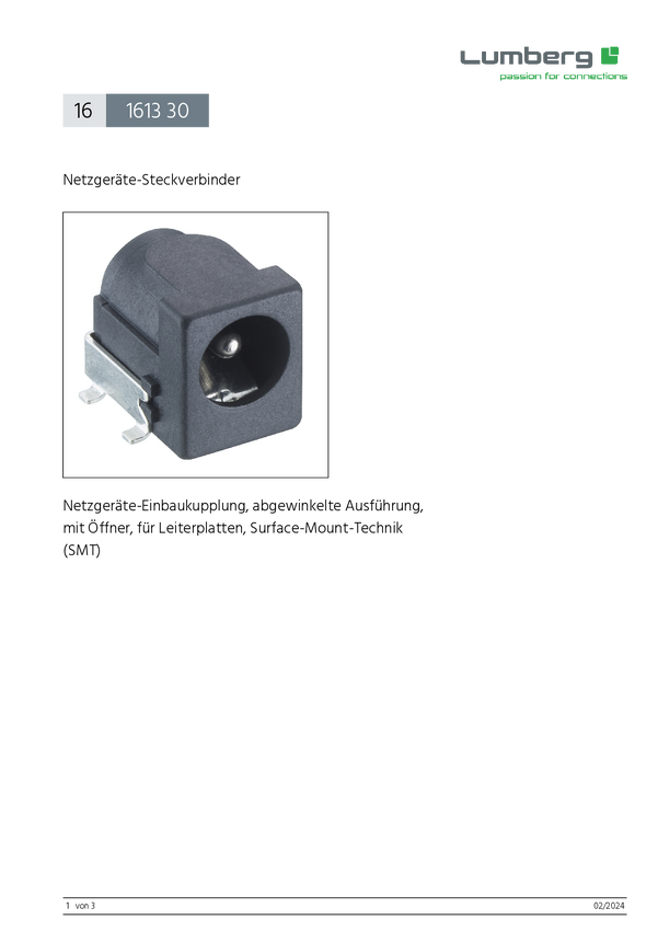 Złącze męskie niskonapięciowe Lumberg 1613 30 VP3 1 szt.
