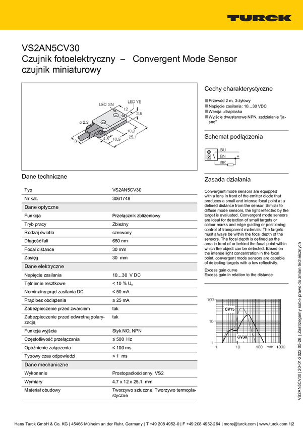 Czujnik światła Turck VS2AN5CV30 3061748 1 szt.