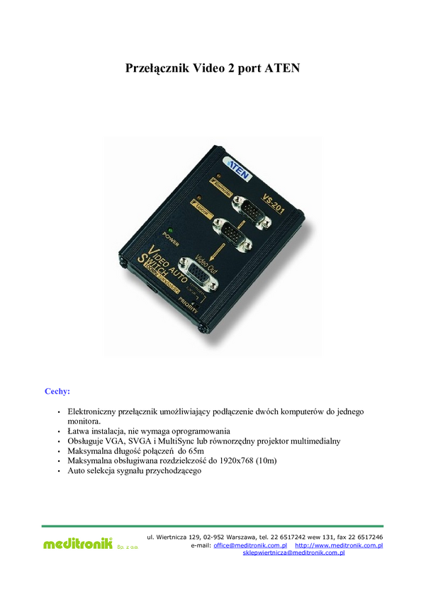 2-portowy przelacznik wideo- ATEN VS201