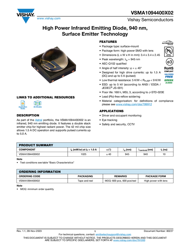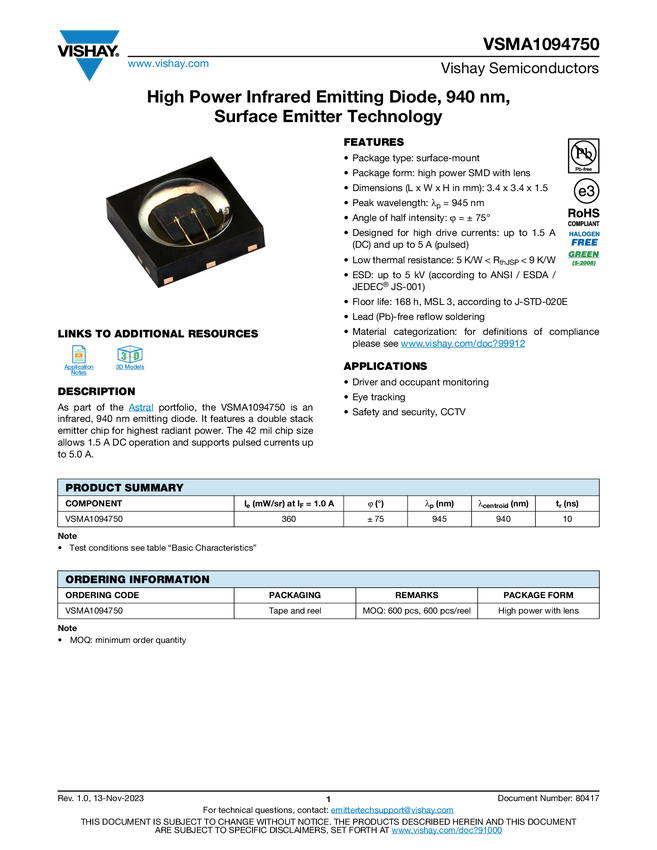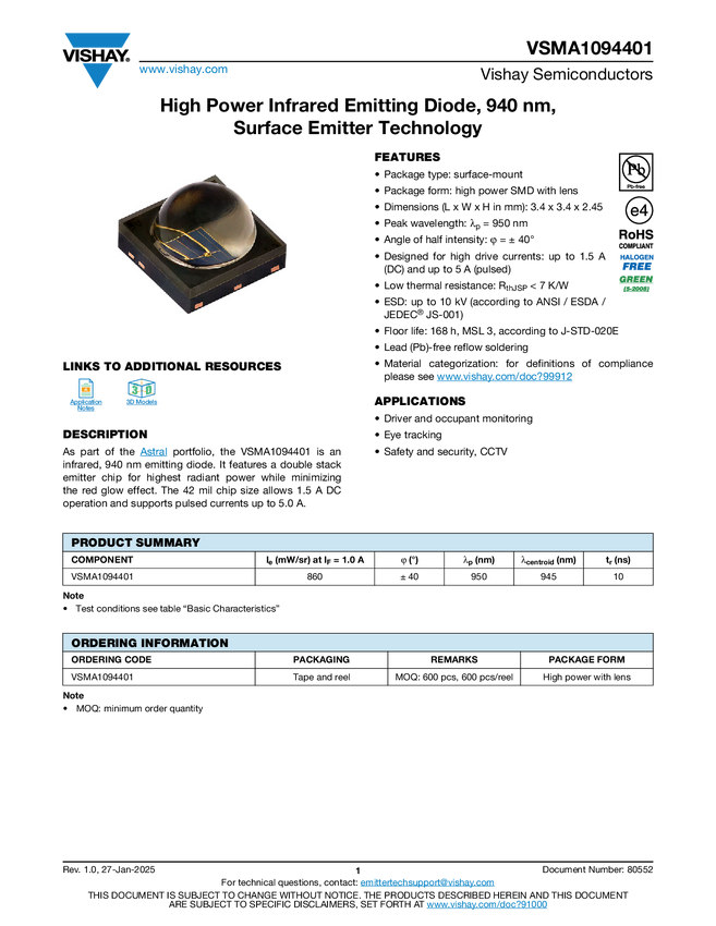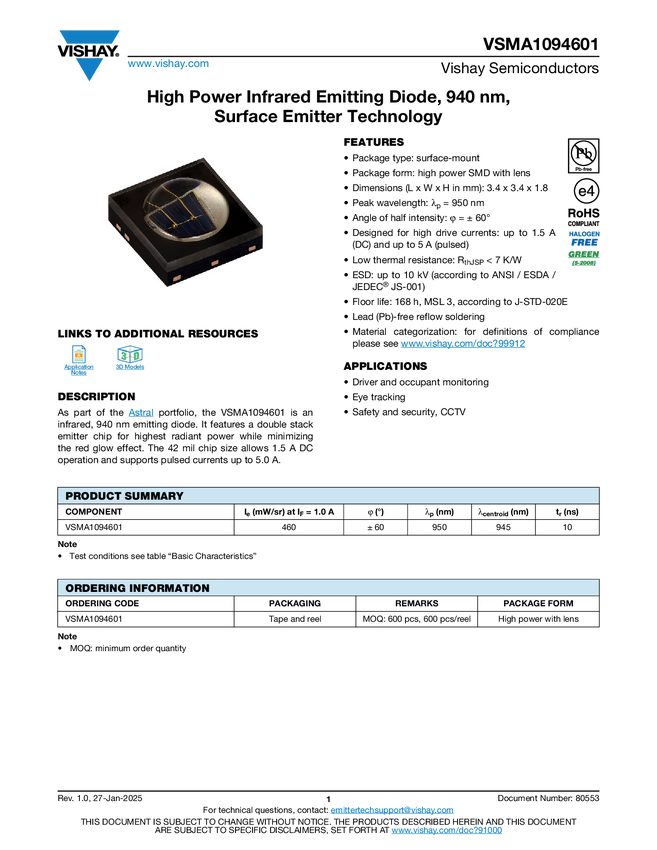 High Power Infrared Emitting Diode, 940 nm, Surface Emitter Technology