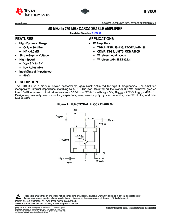 RF Amp Chip Single Cascadable Amp 400MHz 5V 6-Pin VSON T/R
