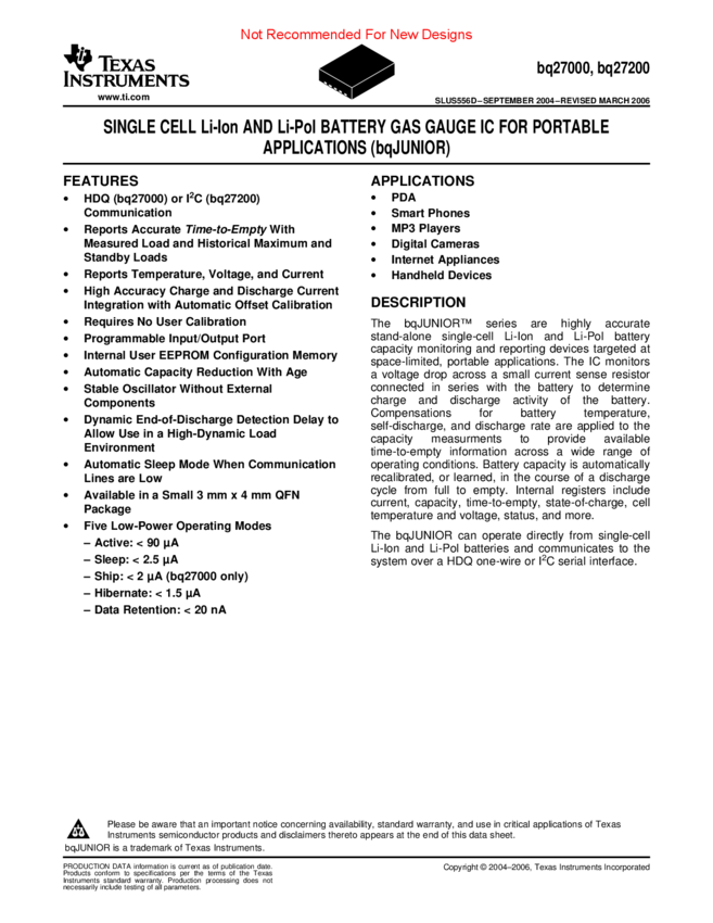 Battery Fuel Gauge Li-Ion 12-Pin VSON EP T/R