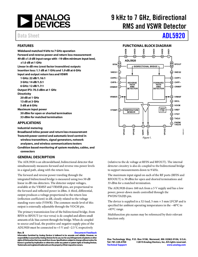 9 kHz to 7 GHz, Bidirectional RMS and VSWR Detector