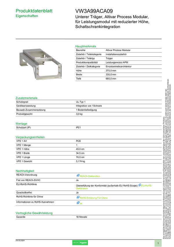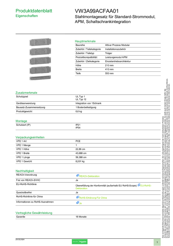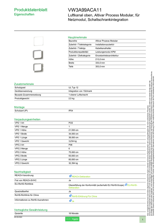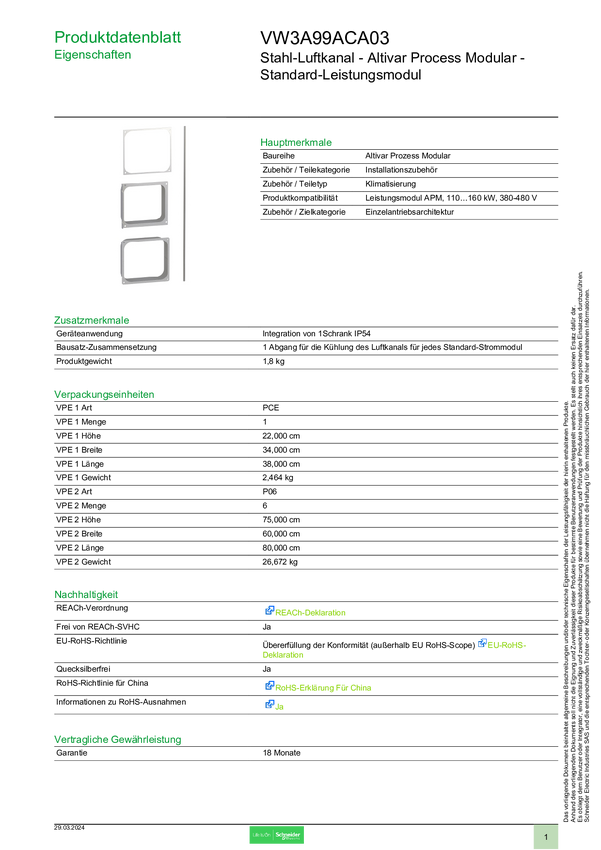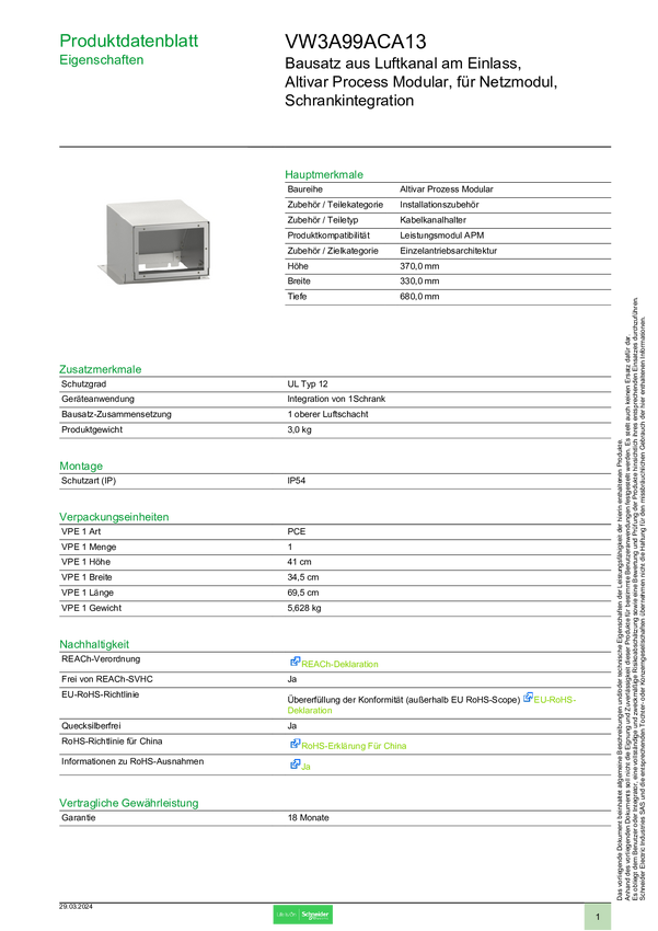 Schneider Electric VW3A99ACA09 Akcesorium do wyłącznika mocy 1 szt.