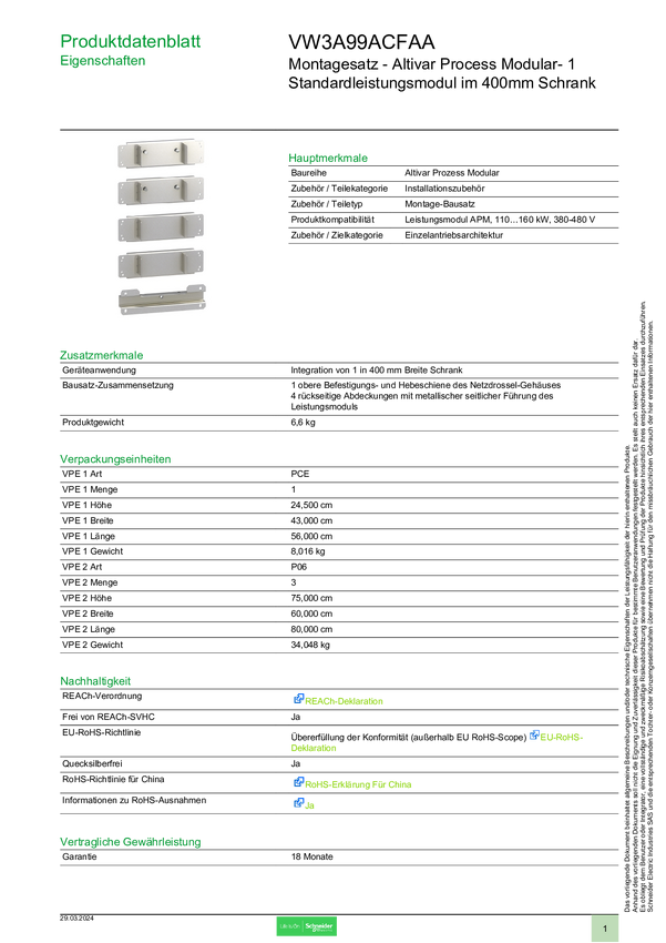 Schneider Electric VW3A99ACFAA Akcesorium do wyłącznika mocy 1 szt.
