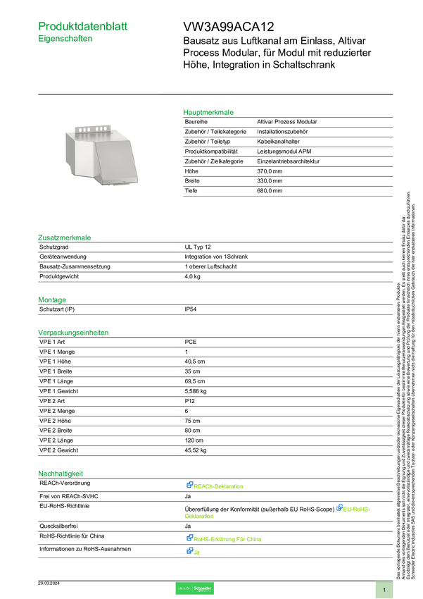 Schneider Electric VW3A99ACA12 Akcesorium do wyłącznika mocy 1 szt.