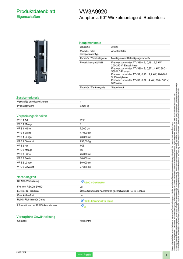 Schneider Electric VW3A9920 Akcesorium do wyłącznika mocy 1 szt.