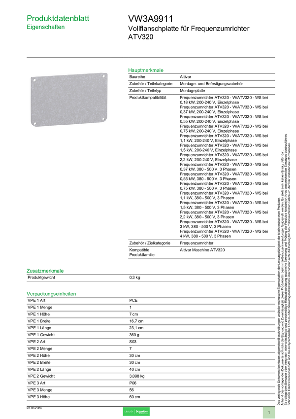 Schneider Electric VW3A9911 Akcesorium do wyłącznika mocy 1 szt.