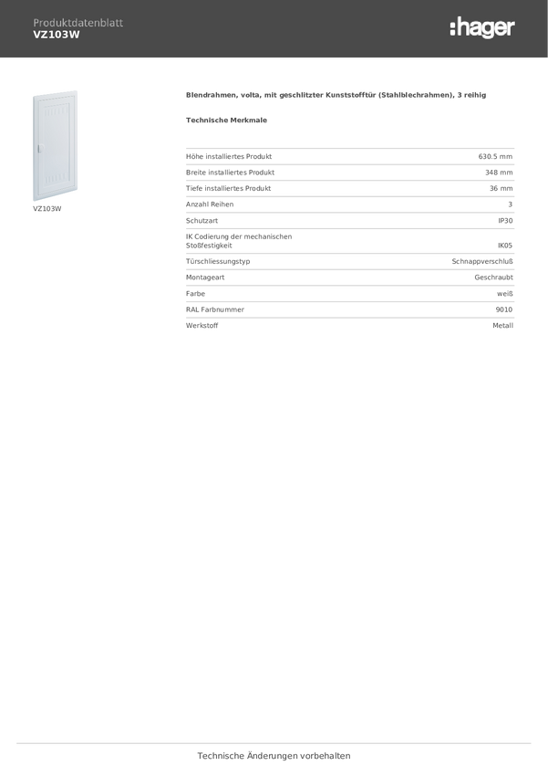 Hager VZ103V Rama zakrywająca stal biały 1 szt.