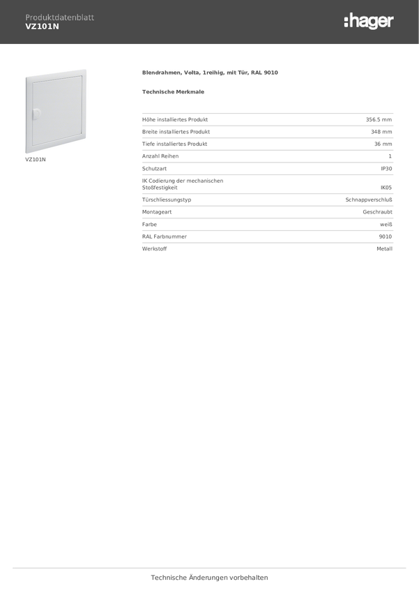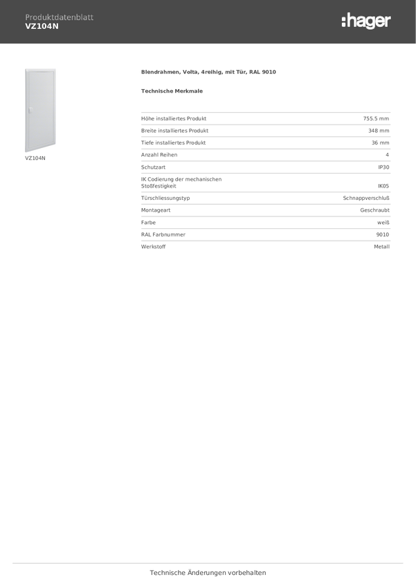 Hager VZ104V Rama zakrywająca stal biały 1 szt.