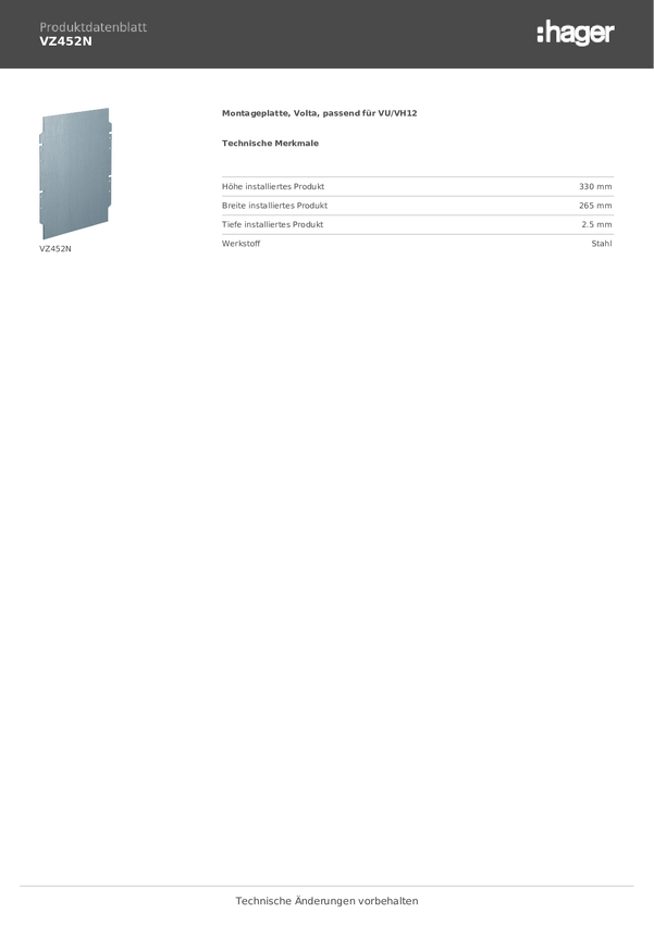 Hager VZ452N Płyta montażowa stal 1 szt.