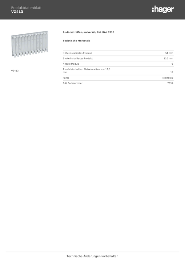 Hager VZ413 Nakładka na listwy szary (ral 7035) 1 szt.