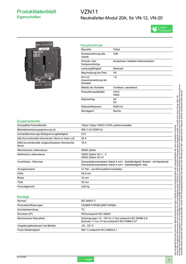Schneider Electric VZN12 Moduł plug-in 1 szt.