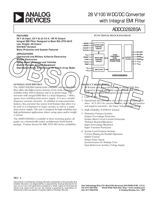 28V/100W DC/DC Converter Vin=16-50V, Vo=28V@3.6A w/EMI Filter