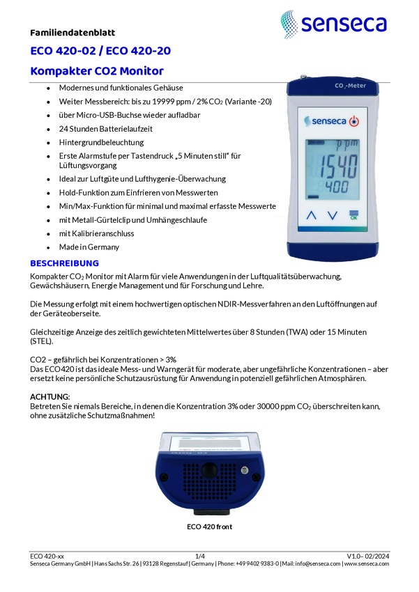 Miernik dwutlenku węgla Senseca ECO 420-20 0 - 19999 ppm