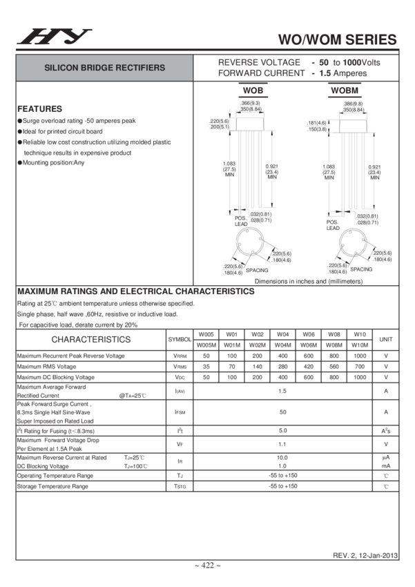 Mostek prostowniczy Graetza 1.5A, 400V, RB15