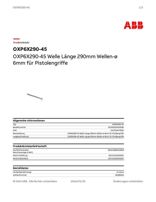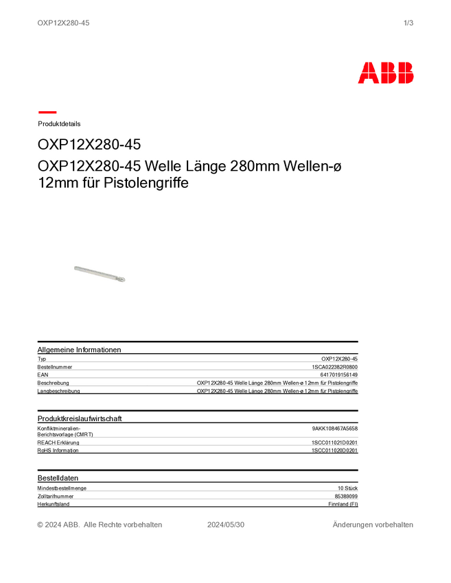 ABB 1SCA022382R0800 Wał OXP12X280-45