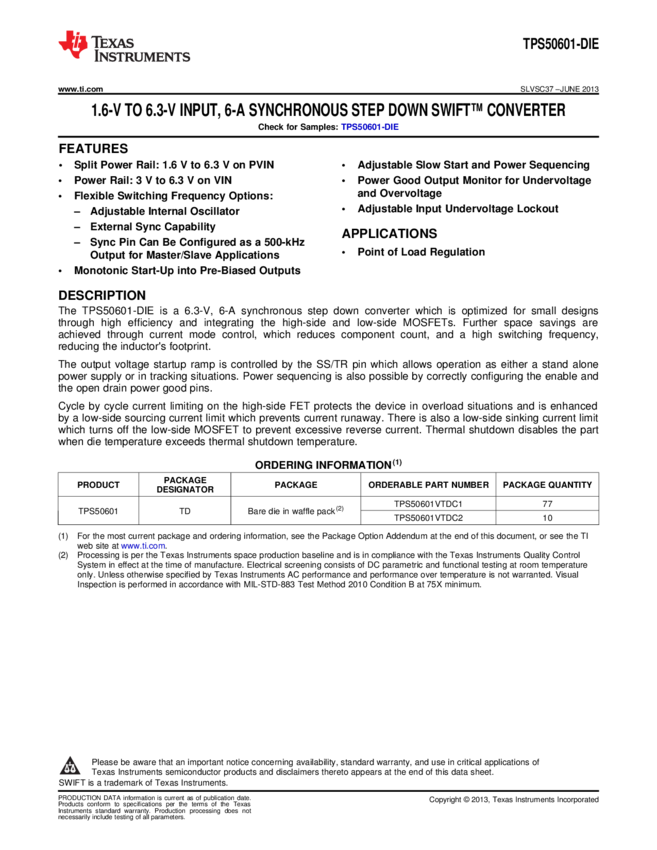 Conv DC-DC Step Down 1.6V to 6.3V DIE Waffle Pack