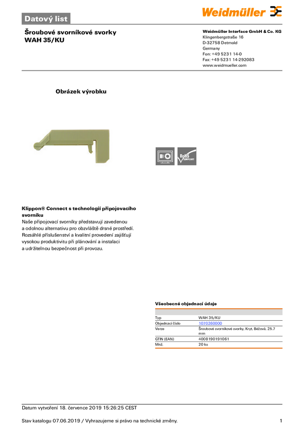 Pokrywa Weidmüller WAH 35/KU 1070260000, 20 szt.