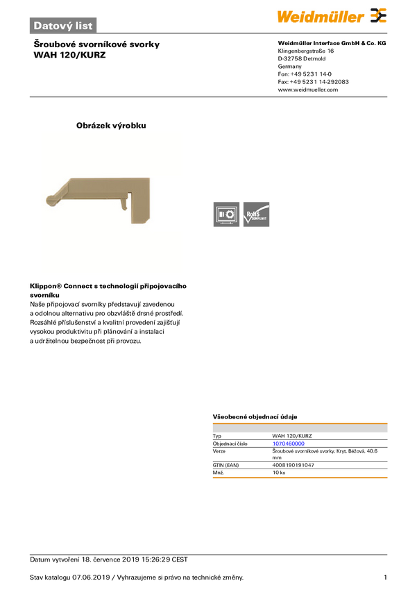 Pokrywa Weidmüller WAH 120/KURZ 1070460000, 10 szt.