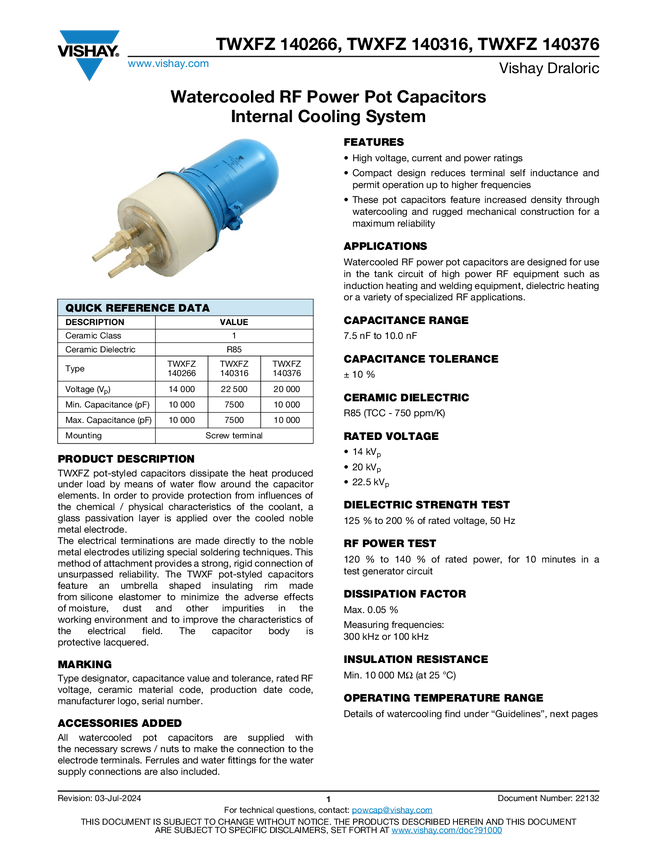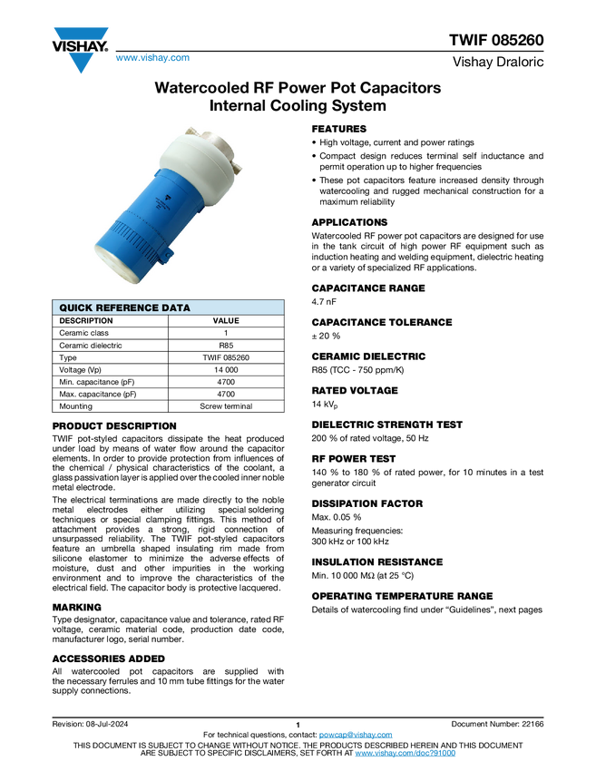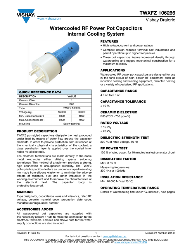 Watercooled RF Power Pot Capacitors, External Cooling System