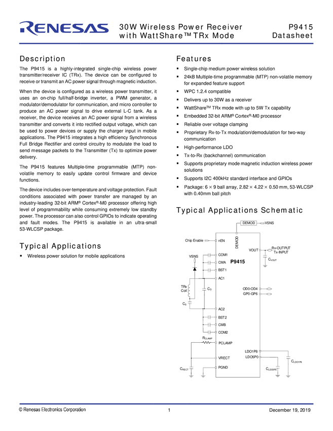 15W Wireless Power Receiver with WattShare™ Mode
