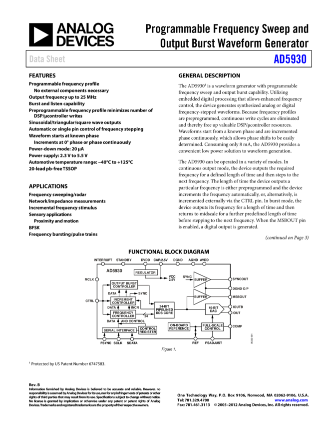 AD5930: Programmable Frequency Sweep and Output Burst Waveform Generator