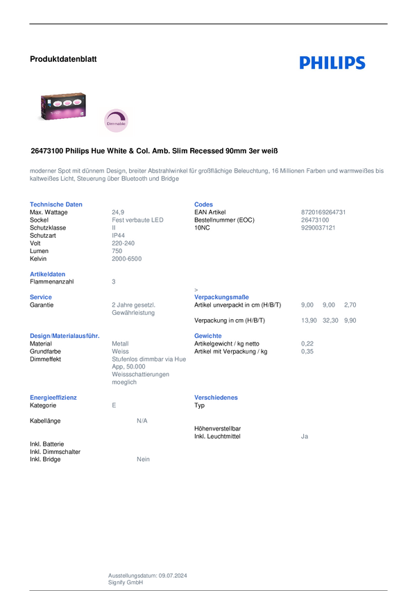 Lampa downlight Hue Hue WCA Slim 929003712102 24.9 W