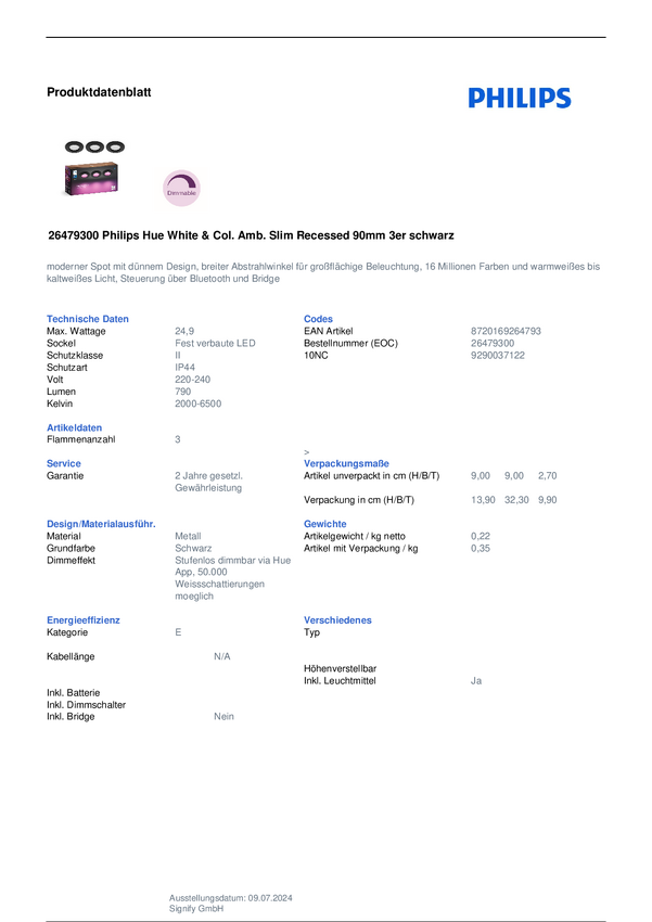 Lampa downlight Hue Hue WCA Slim 929003712202 24.9 W
