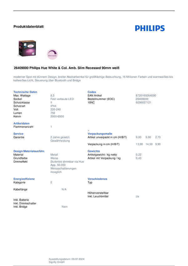 Lampa downlight Hue Hue WCA Slim 929003712101 8.3 W