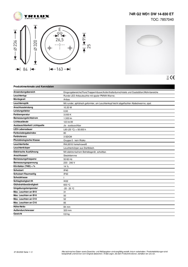 Trilux 74R G2 WD1DW#7857040 Oprawa oświetleniowa LED LED wbudowany na stałe 34 W biały