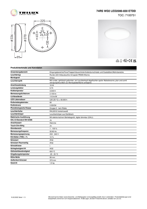 Lampa sufitowa LED Trilux 74RS WD2 #7100751 7100751 19 W 2100 lm biały