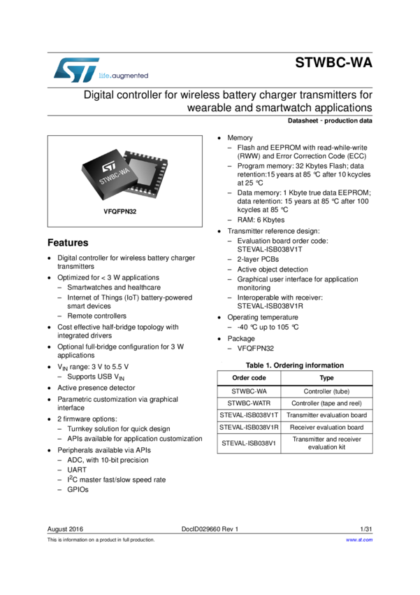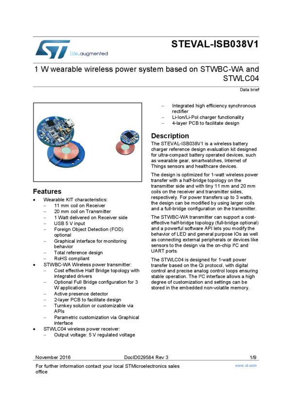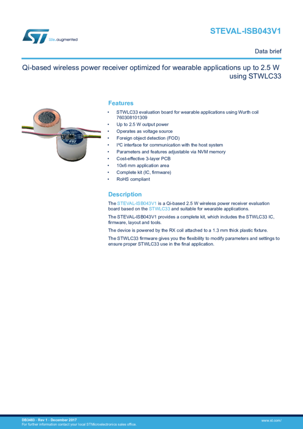 Qi-based wireless power receiver optimized for wearable applications up to 2.5 W using STWLC33