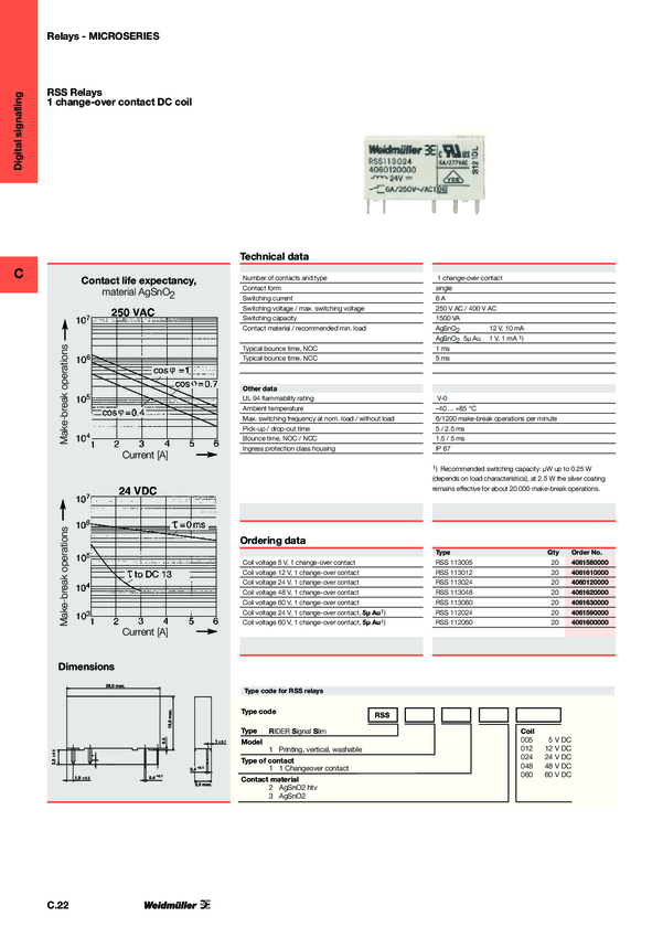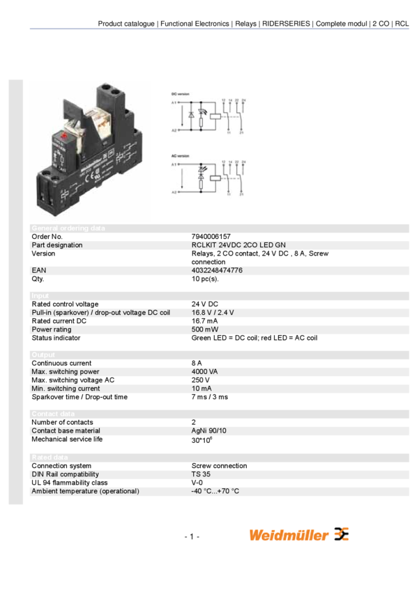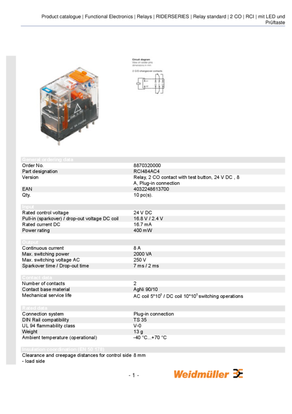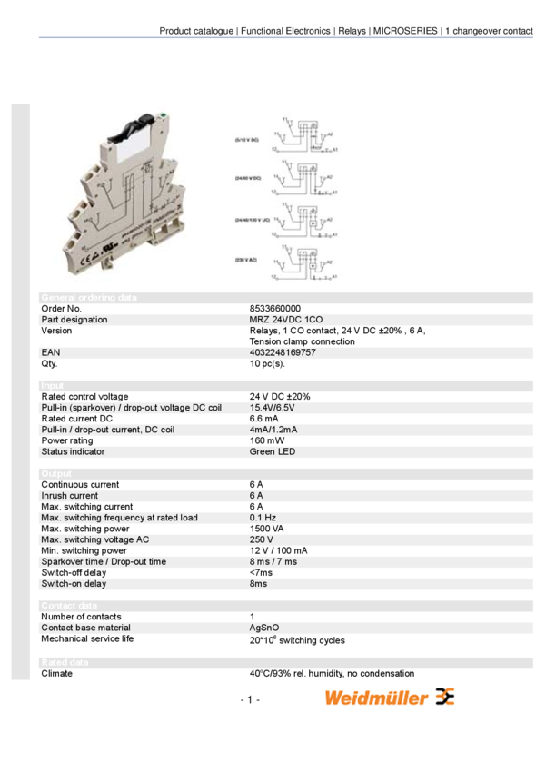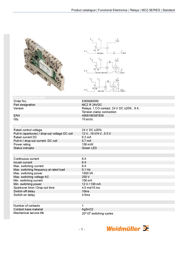 Electromechanical Relay SPDT 6A 24VDC 3.8KOhm DIN Rail