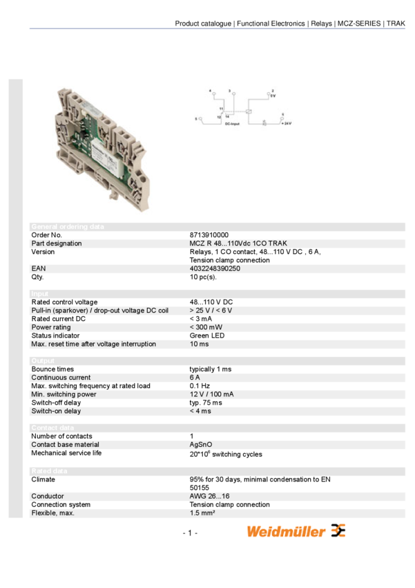 Electromechanical Relay SPDT 6A 48V to 110VDC DIN Rail