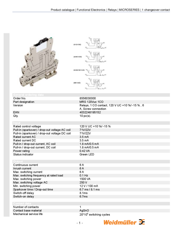 Electromechanical Relay SPDT 6A 120VDC 120VAC DIN Rail