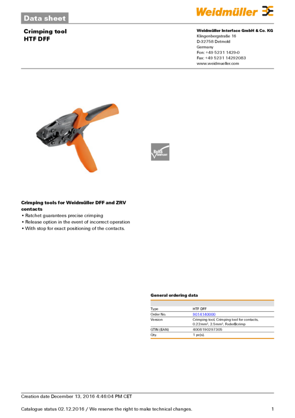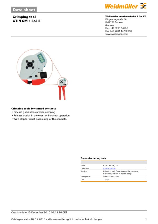 Crimp Tool For 0.14mm² and 1.5mm² Wire-end Ferrules Trapezoidal Crimp