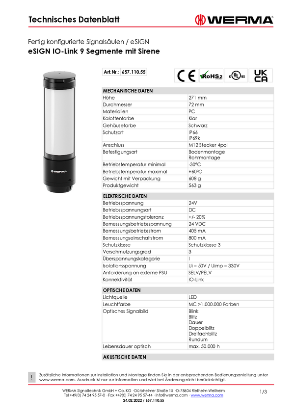 Wieża sygnalizacyjna z syreną Werma Signaltechnik eSIGN 657.110.55 1 szt.