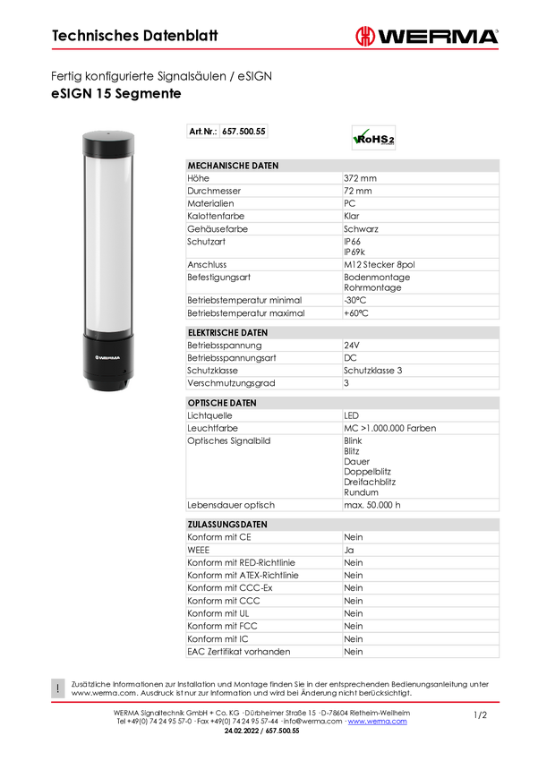 Kolumna sygnalizacyjna Werma Signaltechnik eSIGN 657.500.55 1 szt.