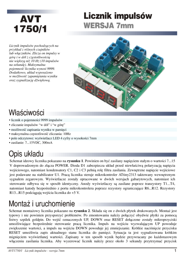 AVT1750/1 Licznik impulsów wersja 7mm