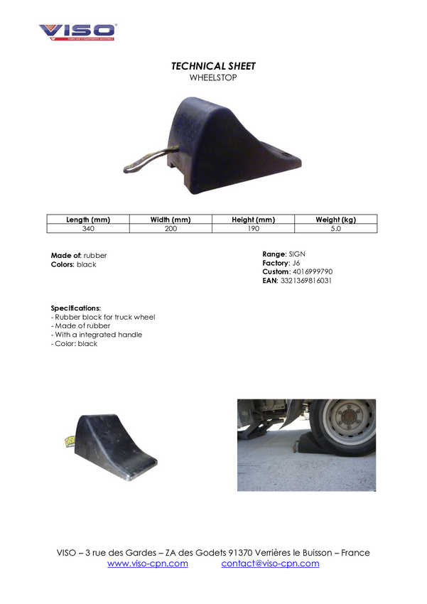 VISO WHEELSTOP WĘGLOWODÓR4 Klin pod koło (D x S x W) 340 x 200 x 190 mm