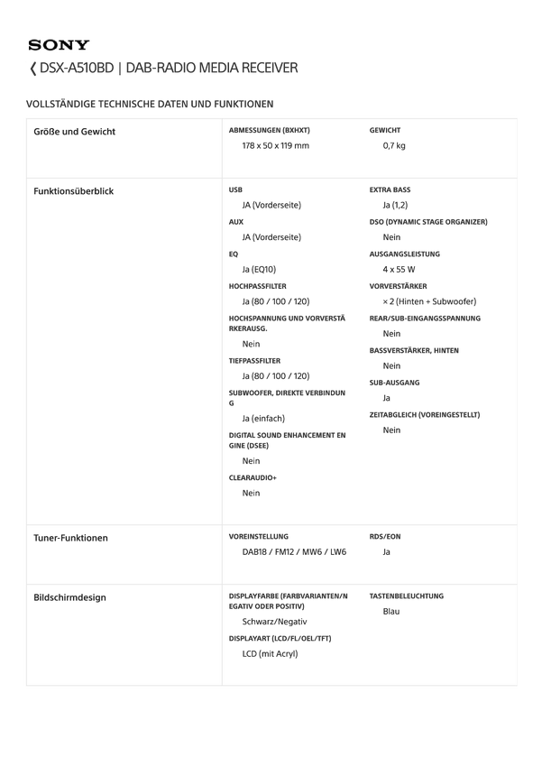Sony DSX-A510KIT Radio samochodowe Tuner DAB+, Zestaw głośnomówiący Bluetooth®