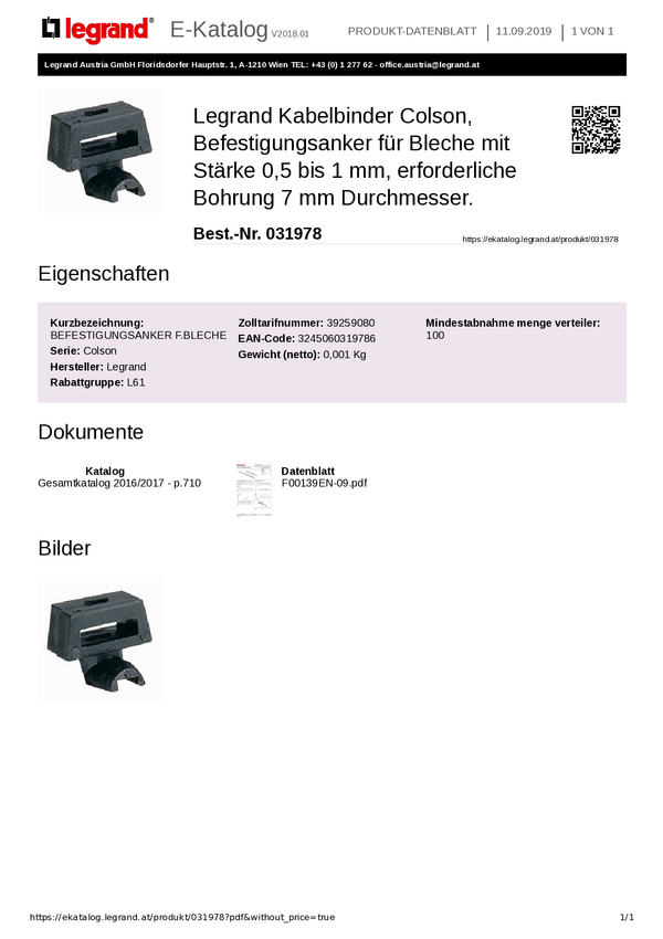 Legrand Legrand 031978 Akcesorium montażowe 031978 Zakres średnicy wiązki 9 mm (max) czarny 1 szt.