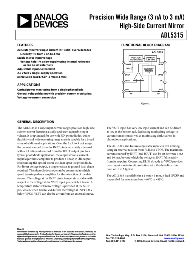 ADL5315: Precision Wide-range (3 ) High-Side Current Mirror