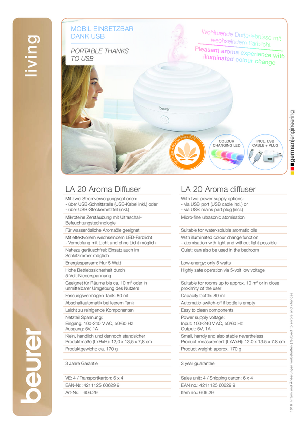 Beurer LA 20 Aroma Diffuser Odświeżacz powietrza 1 szt. biały