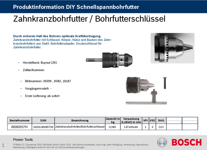 Uchwyt wiertarski z wieńcem zębatym do 13 mm Bosch Accessories 2609255701