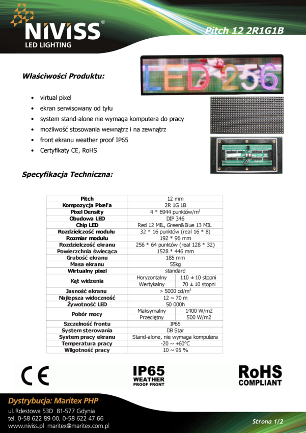 Ekran LED: JZDS12O-2R1G1B-38X154, raster=12mm, 2R1G1B, wirtualny pixel, serwisowany od tyłu, powierzchnia świecenia: 1536 x 384mm