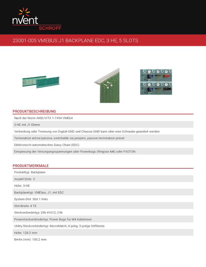nVent SCHROFF 23001005 Płyta drukowana magistrali wielobarwny 1 szt.